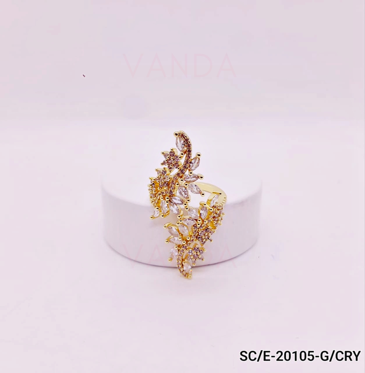 Anillo de Strass de Flores y Hojas – Regulable – R-20105
