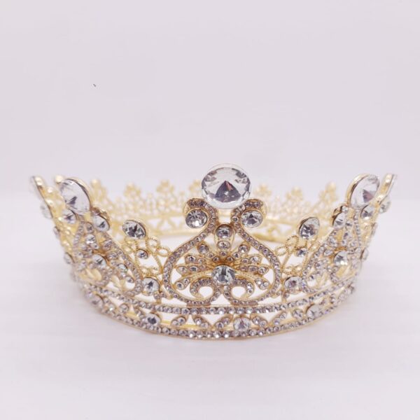 Elegante tiara de metal con piedras de fantasía, ideal para realzar cualquier look en ocasiones especiales. Su diseño delicado y sofisticado la convierte en el complemento perfecto para egresos, fiestas de 15, casamientos o eventos formales. Fabricada en metal resistente y decorada con piedras brillantes que captan la luz con cada movimiento, esta tiara aporta un toque de distinción y elegancia sin igual.